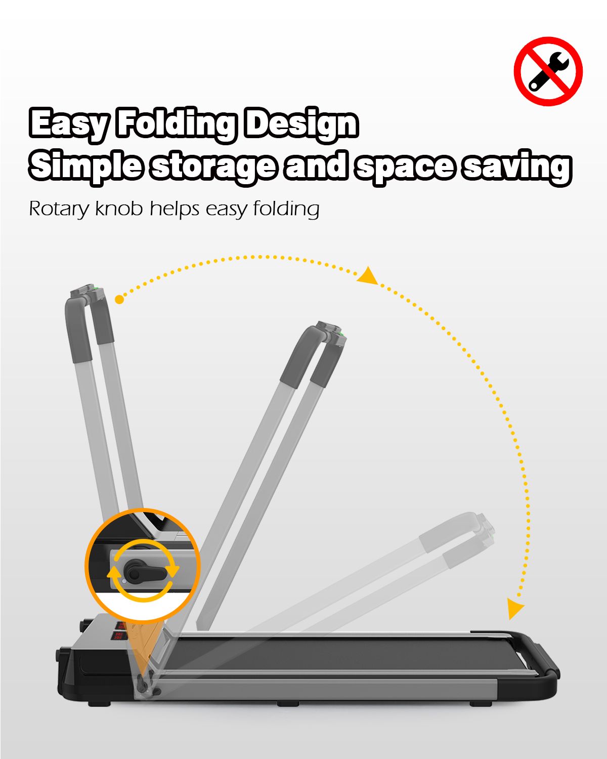 Easy folding mechanism helps you unfold your treadmill safely and hands free. The folding treadmill is now smaller and more compact, weighing only 28 kg. Folding size is 53.6 x 26 x 5.5 inch (L x W x H). Perfect for home and office use.